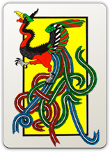 The ever-changing Phoenix is the most powerful card in Tichu. However, it counts minus 25 points. It may be played as a single card with value +0.5 higher than the previous card played (i.e. after 5, Phoenix is played as 5.5, while after A, it is played as A.5, meaning that only dragon or a bomb could beat it if it's played after an Ace), or as a wild card replacing a non-special card in any other combination, like in the following examples: 5-P (pair), 5-5-P (trio), 8-8-9-P (sequence of pairs), 8-8-P-2-2 (full house), 3-4-P-6-7 (straight). However, it can not be used in combination with Mah Jong or Dragon to create a pair and can not be used to make a bomb. Finally, the Phoenix can not go above the Dragon, does not satisfy the Mah Jong wish, even if it gets the value of the requested card, and if it's played on its own as the first card of the leading player, it has a value of 1.5 (meaning that even 2 has a higher value).